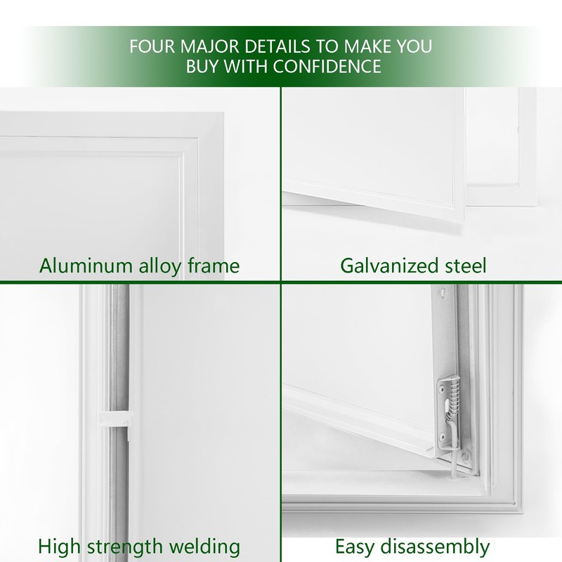 - 【Quality Materials】: The drywall access panels 24inch x 24inch adopts aluminum alloy frame with light weight, strong bearing capacity and easy installation. The door panel is made of rust-proof galvanized steel to prevent the access door from rusting and aging