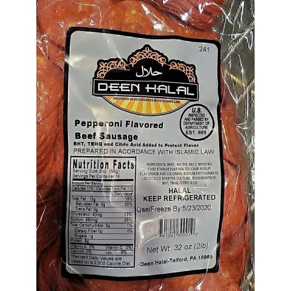 Deen Halal Sliced Pepperoni Flavored Beef Sausage 2lb (2 pack) Total 4lb