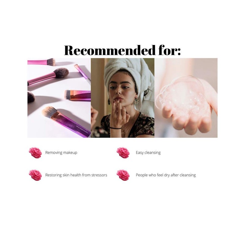 - Does not damage the skin's moisture barrier and keeps the skin hydrated and clean after cleansing
