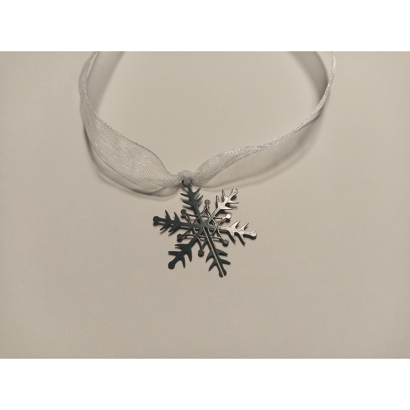 - Deep blue snowflake charms on white ribbon
