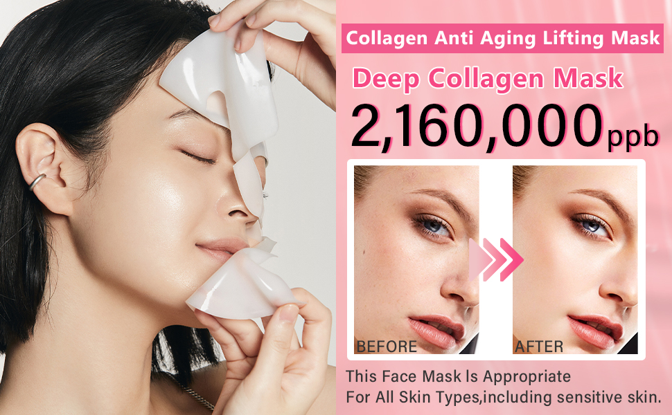 - 【Anti Aging and Wrinkle Care】 With the growth of age, the collagen on the skin will gradually disappear, leading to the skin becoming loose and wrinkled. For this situation, we have specially developed this collagen facial mask. This facial mask contains ultra-low molecular collagen, which can penetrate into the bottom of the skin, help cells to produce collagen, promote the growth of skin cells, and thus improve the skin sagging and wrinkles.