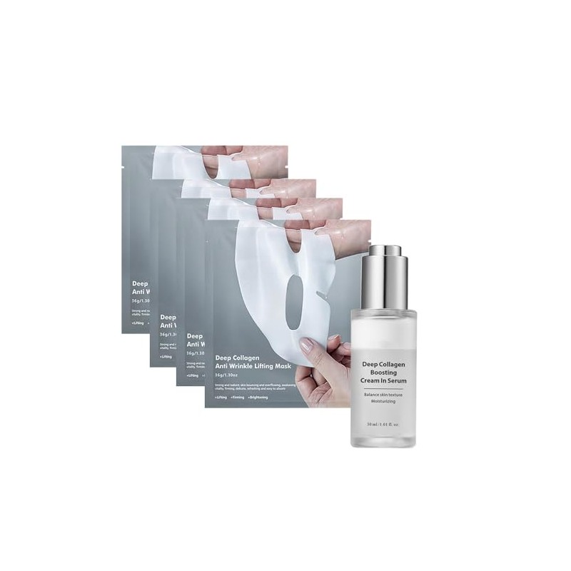 Deep Collagen Serum for Face, Anti-Wrinkle Face Serum Set with Collagen Mask 4Pcs, Lifting and Moisturising