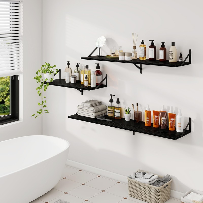 - Wall Decor and Storage: These classic and practical black floating shelves are the perfect solution to transform blank, uninspiring walls into stylish, functional displays. Showcase your favorite books, collectibles, artwork, and more with ease, adding both character and organization to any room.