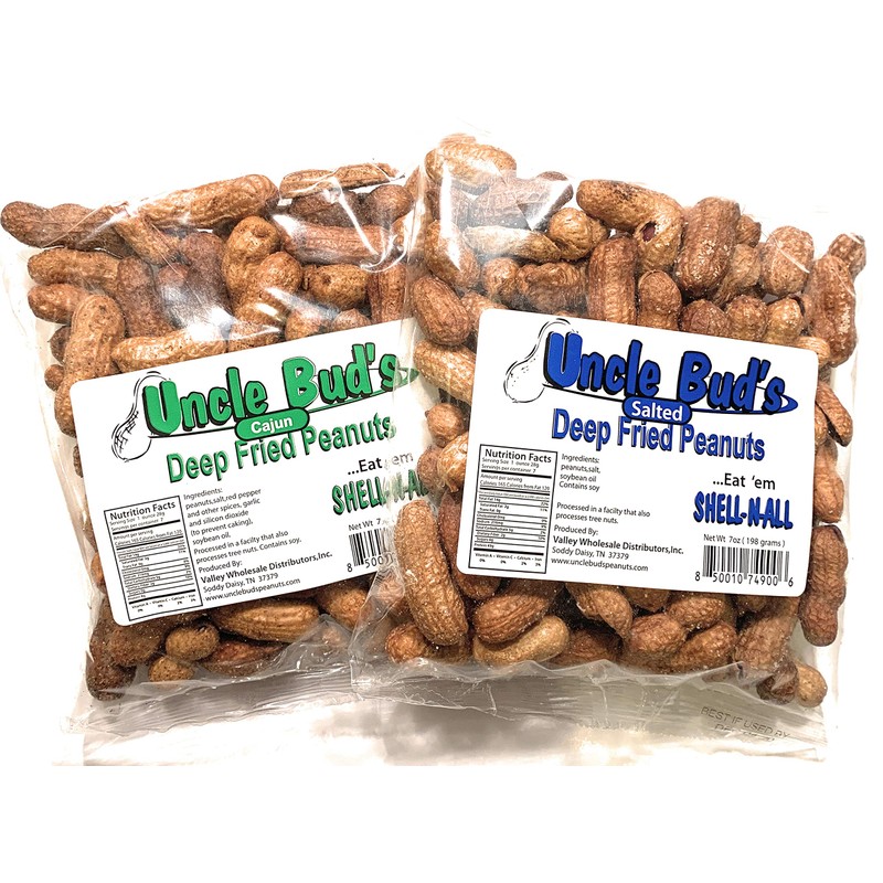 Deep Fried Peanuts | Eat 'Em Shell-n-all | 7 oz. | 2 Pack (Salted and Cajun)