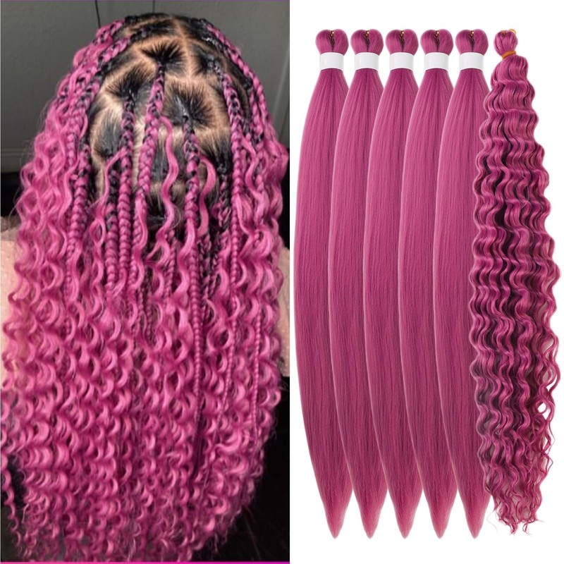 - Deep Pink Braiding Hair for Boho Braids, There are 5 Packs Pre Stretched Braiding Hair and 1 Pack Deep Wave Boho Braiding Hair , Total 6 Packs Hair in One Package.