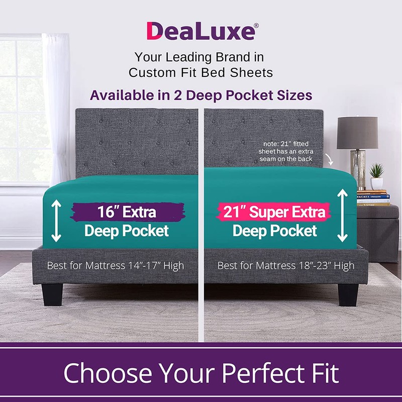 • Real 21” Super Extra Deep Pocket Fitted Sheets. What’s the difference between 14” Regular sheets and 21” Deep Pocket Sheets? 14” Regular fitted sheets are made for mattress up to 16” only, vs these 21” Deep Sheets will fit a mattress from 18” to 23”, making it the perfect choice for high profile pillow-top mattresses with foam and pillow toppers the more fabric there is, the better it will hold all night long for a neat look and cozy feel made for your ultimate pleasure and comfort.