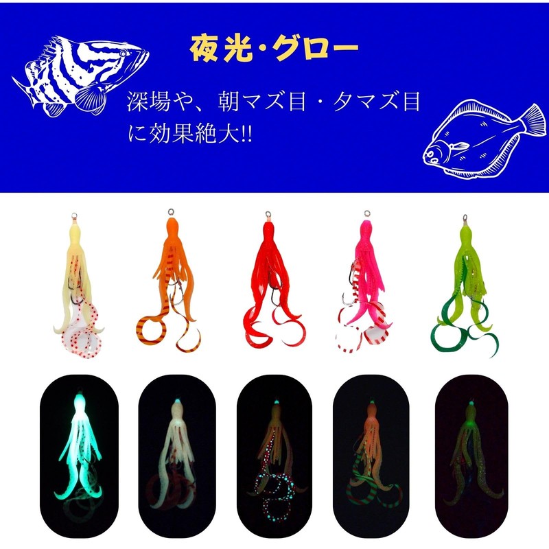 - 【5 Piece Set】You can get 5 octopus baits tilavas at a time. This allows you to swap your lures in seconds even if you lose them in the middle of fishing and keep your fishing fun uninterrupted