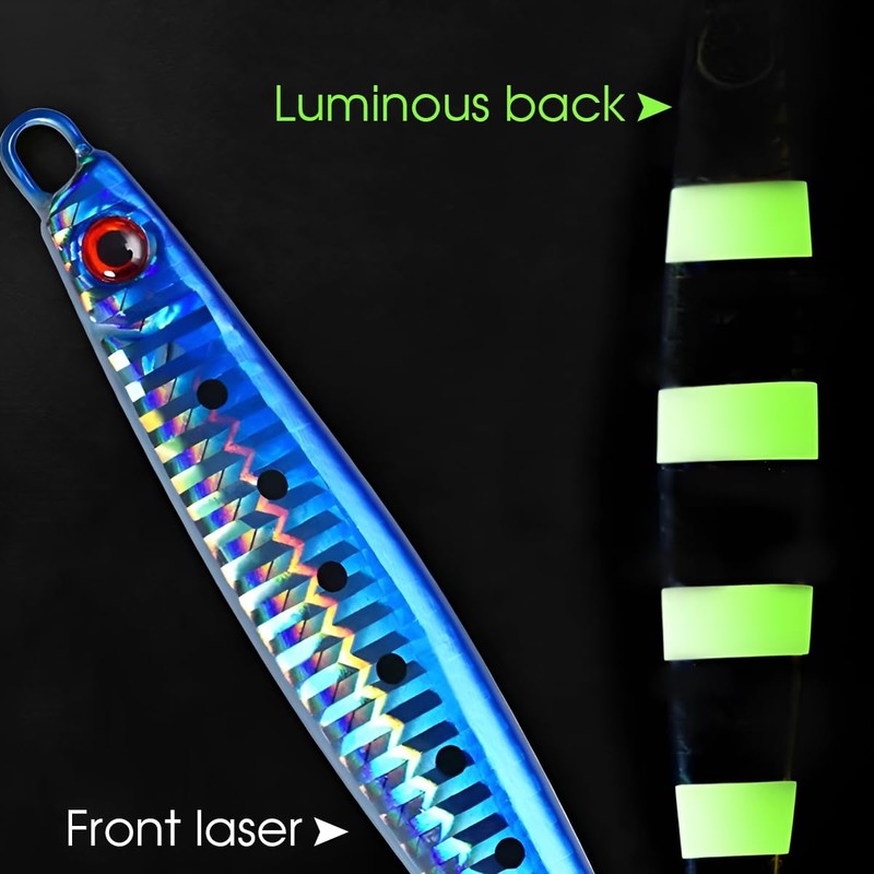 - ✅ Different Weights Sinking Lures: 4 colors with 6 kinds of weight and length. 60g is about 8.7cm. 80g is about 9.7cm. 100g is about 11cm. 120g is about 11.2cm. 150g is about 12.1cm. 180g is about 13.2cm.