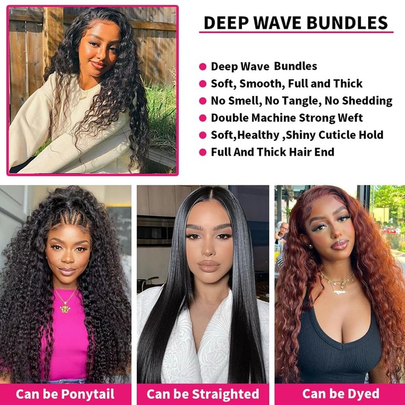 - 【Hair care】Spray water or curling conditioner before installation to keep your deep wave crochet hair soft and long lasting to reduce tangles. Recommended to sleep with a scarf over your hair to avoid tangles. Using foam mousse and a wide toothed comb, curly hair will be better and more lasting.