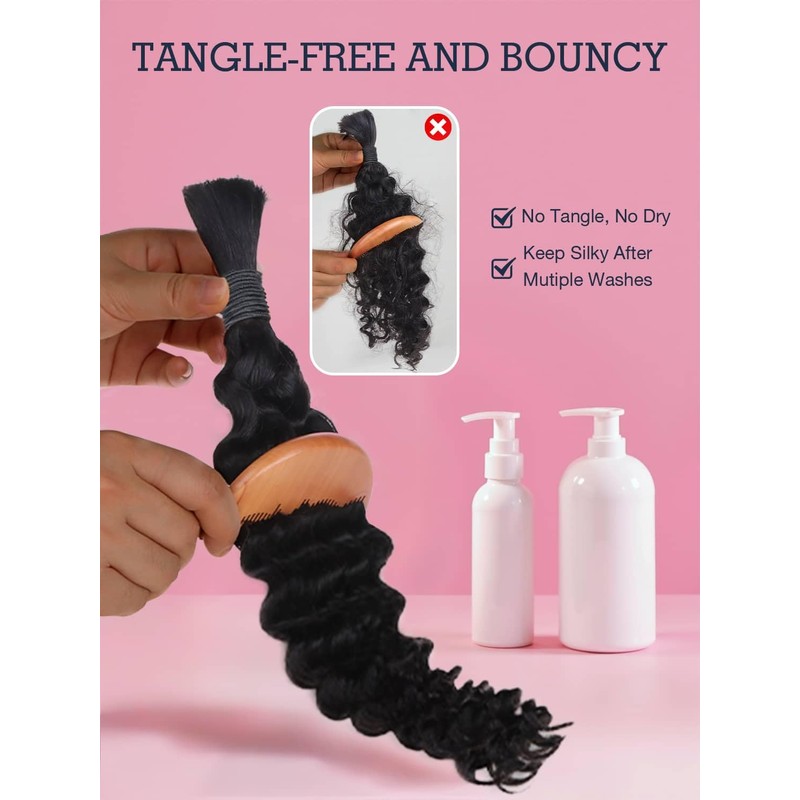 Deep Wave Human Braiding Hair for Boho Braids, 100g 2 Bundles/Pack 20 Inch #1B Natural Black, Bulk Human Hair for Braiding Human Hair Braiding Hair for Knotless Boho Braids Human Hair Bundles