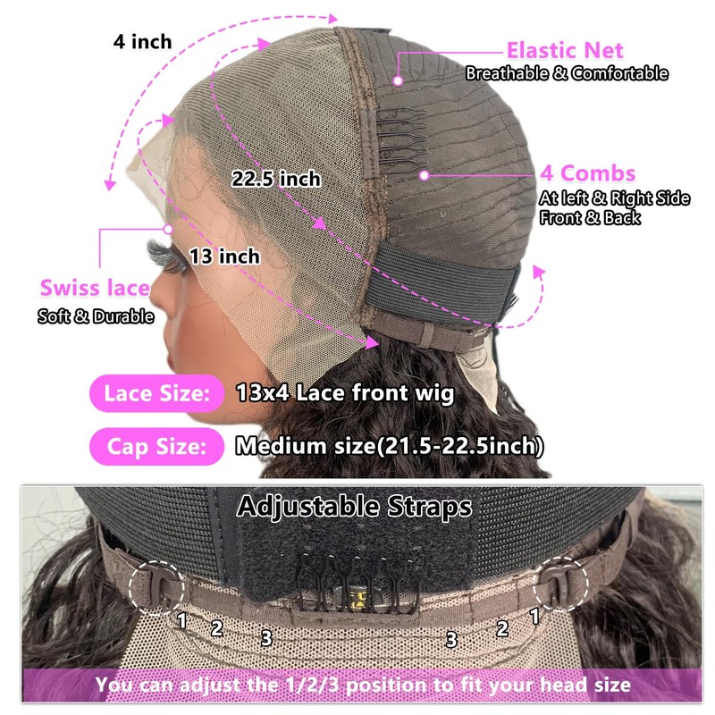 Cap Size:Medium size(21.5-22.5inch) with adjustable straps and 3 combs