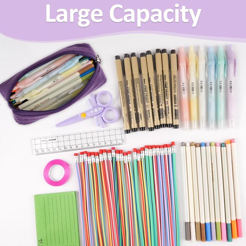 - Premium materials: our pencil case is made of high-quality corduroy fabric, is durable, scratch-resistant and wear-resistant. This pen bag with strong zip is perfect for storing a lot of pens and pencils.