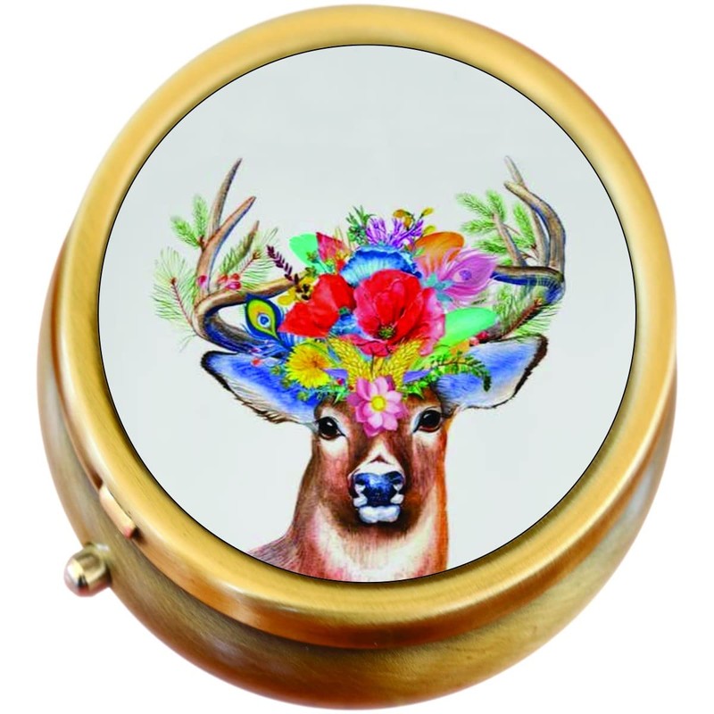 Deer Flowers Antlers Brass Pill Box