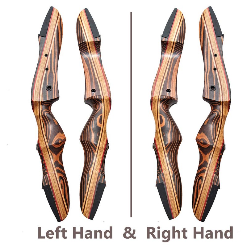 - Multi-laminate limbs & riser - the limbs are laminated with fiberglass & mapple wood, base on recurve shape, it could give this bow a faster speed and low vibration; the riser is combined with hard and high-density Dymond wood, so it's fairly strong and could support the max draw weight 60lbs