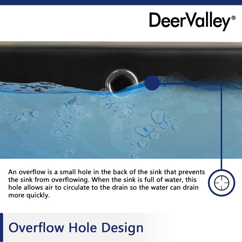 - 【Splash-proof & Overflow Hole】 6 1/2" deep inside which can effectively avoid splashing when washing hands or brushing teeth. Standard 1.75" rear drain opening works with pull-up & pop-up drains with overflow to prevent excessive filling. (Drain Assembly not included)