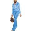Deeryi Track Suits for Women Set Y2K Zip Up Velvet Crop Top Jacket and Elastic Waist Flared Pants Sweatsuit Light Blue S