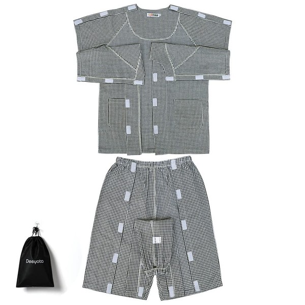 DEEYOTA 介護パジャマ 半袖 綿100% マジックテープで全開 入院パジャマ オムツ交換 寝たきり 骨折する 点滴中サポート 高齢者 シニア 部屋着 室内着 ブラックL