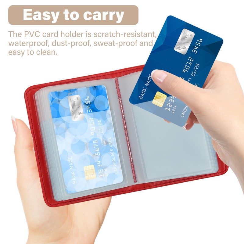 DEEZOMO 40 Card Capacity PU Leather Credit Card Holder & RFID Wallet for Men Women, Slim Travel Wallet with Secure Storage Compact Organizer for Business-Red