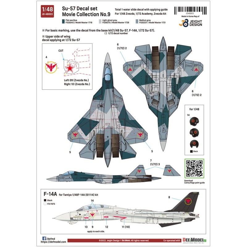 DEF.MODEL DEF MODEL 1/48 Current Su-57 F-14 Decal Set Movie Collection No.9 Top Gun 2022 (Tamiya Zvezda) Plastic Model Decal JD48003