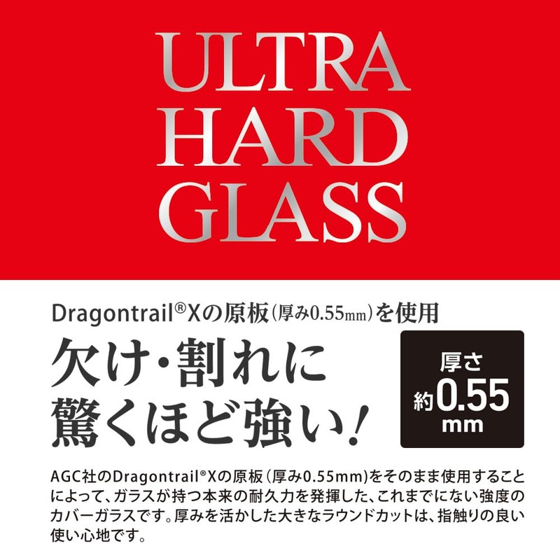 - Product Material: AGC Co., Ltd. Chemical tempered glass Dragontrail(R) X (base material), film (shatterproof treatment, adhesive parts)
