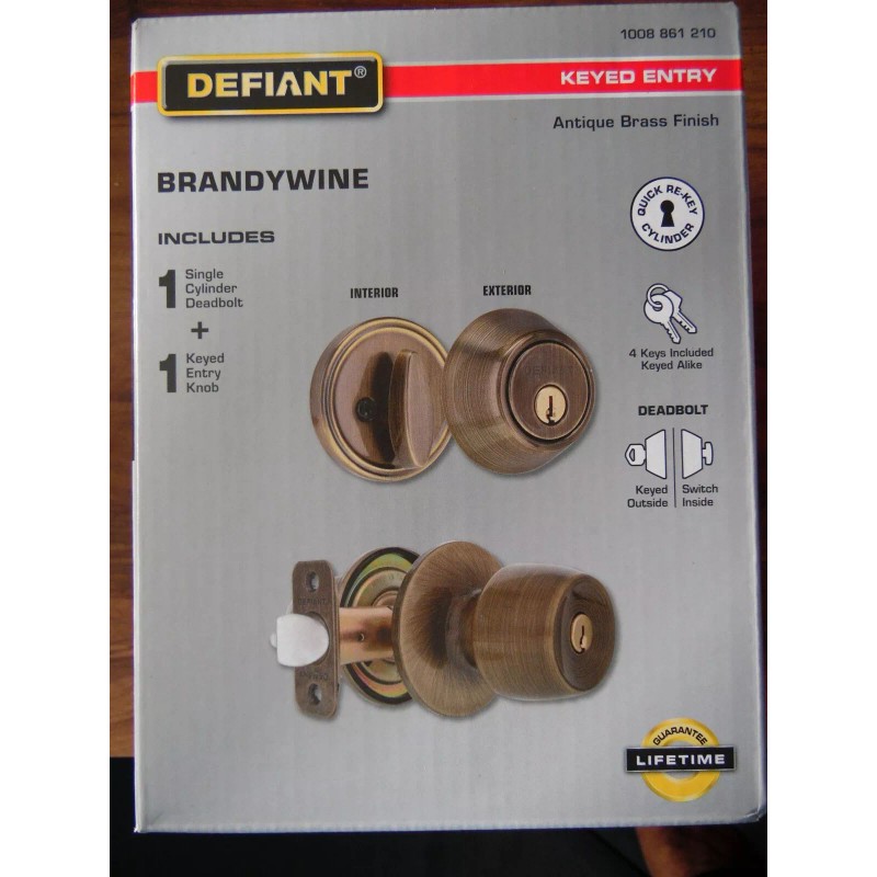 Defiant New Defiant Brandywine Antique Brass Keyed Entry Knob with Deadbolt 1008 861 210