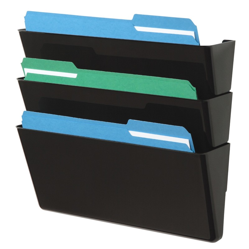 Deflecto Office DocuPocket 73604, Wall File Organizer, Stackable, Letter Size, Black, Set of 3, 13"W x 7"H x 4"D