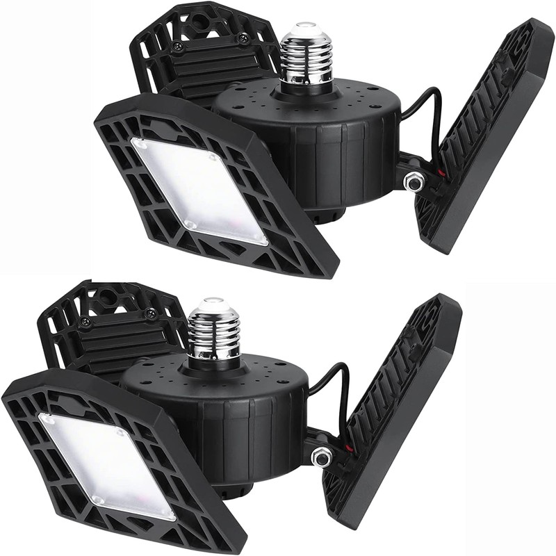 Deformable LED Garage Light - 6000 Lumen 4500K Neutral 60W, Three Leaf Garage Organization Ceiling Lighting 2-Pack