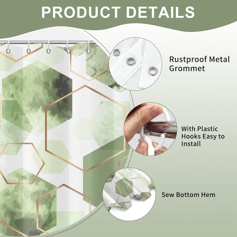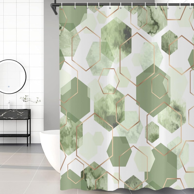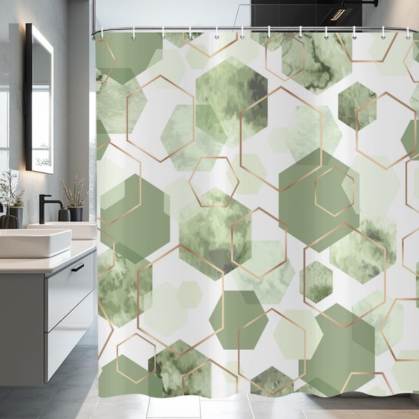 - Modern Hexagon Design: Modern and unique geometric hexagon design of print, high definition with vivid sage green colors, elegant and luxury, making our bathroom curtain an ideal choice for those who appreciate timeless charm in their decor.