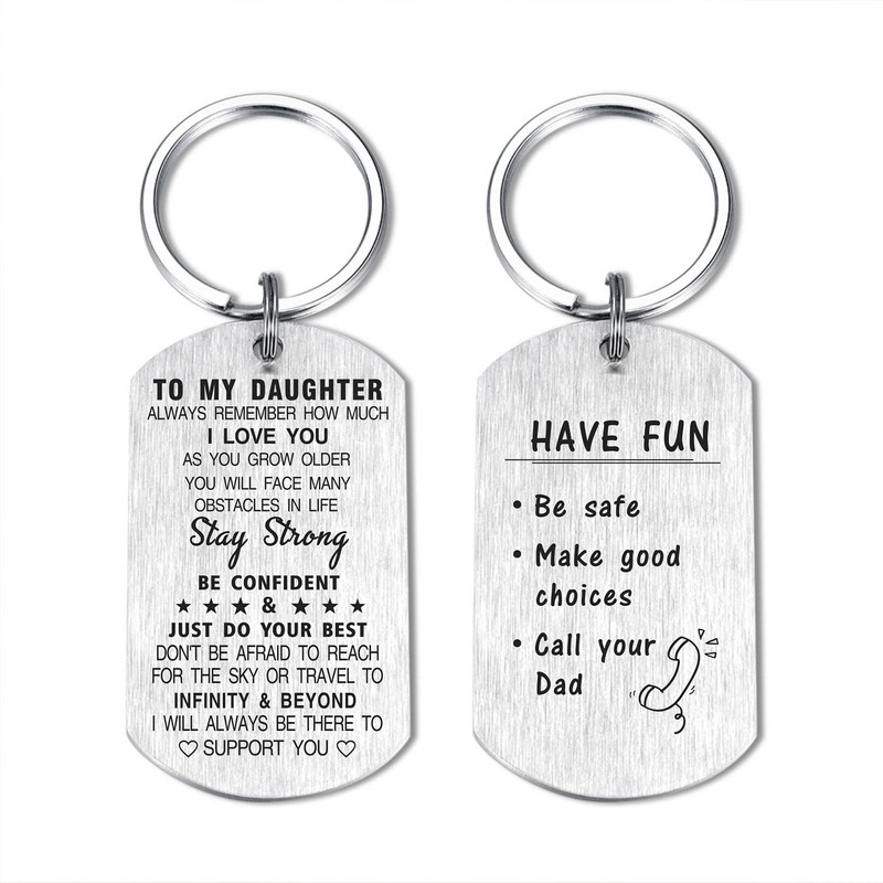 To My Daughter Keychain Gifts from Mom Dad, Have Fun Be Safe Make Good Choice, Leave School College, Christmas Gifts for Daughter