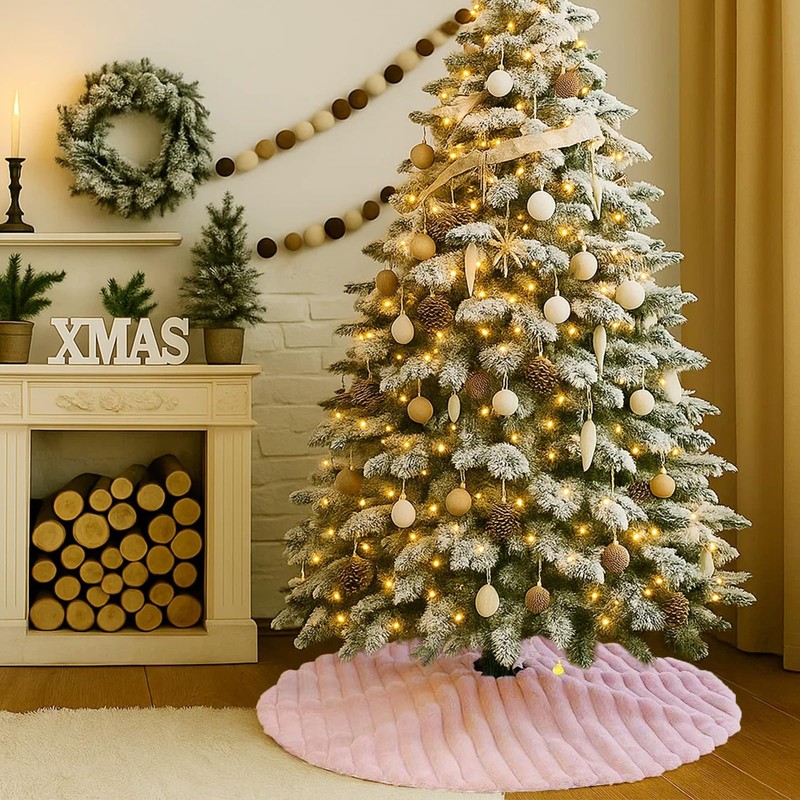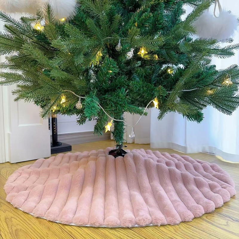 • Material: This Luxury faux fur Christmas tree skirt is made from Pink plush. High-quality faux fur Christmas tree skirts decorated with striped textured pattern, adds a cozy and luxurious feeling to your Christmas decor.