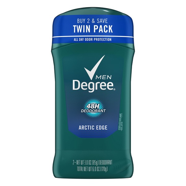 Degree Men Fresh Deodorant - Arctic Edge 3 oz, 2-Pack helps keep you fresh, no matter what. Degree Men Arctic Edge provides time released freshness with a cool scent of mint, accented by crisp mandarin. Whether you're having a long day in the office, playing sport outdoors or working out in the gym, with Degree Men Arctic Edge you can be confident that you'll be protected from body odor all day long. Degree Men Arctic Edge Deodorant uses our classic formula with a fresh scent to give you long lasting odor protection. Designed by experts, Degree deodorant contains active odor fighting ingredients and time released molecules that release fresh fragrance throughout the day. Degree Men Arctic Edge is a men's deodorant stick that works as hard as you do and leaves no stains, so you can remain confident and smell great when you need to most. For powerful, long-lasting odor protection that keeps you smelling great all day long, you can trust Degree. It comes in an easy to use 3 oz applicator stick. You simply turn the dial to raise the stick, then apply a thin layer to your underarms and you're ready for anything. Stay confident and smell great with Degree Men Arctic Edge Deodorant. Degree. It won't let you down.