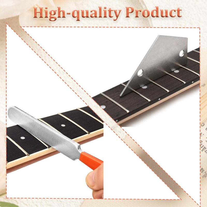 - 【Guitar Luthier Tool Kit】You will get: 1*16 inch guitar fret leveling sanding beam, 1* guitar neck notched straight edge, 1* guitar fret crowning luthier file, and 1* guitar fret rocker. Suitable for electric guitar, electric bass, acoustic guitar, classical guitar, etc. Great repair tool for beginners, luthiers, guitarists, music enthusiast, etc.