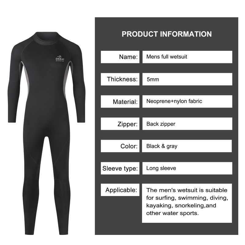 DEHAI 5mm Wetsuit Mens Neoprene Diving Wet Suits Long Sleeve Back Zipper Full Body Thermal Swimsuit in Cold Water Keep Warm for Swimming Scuba Surfing