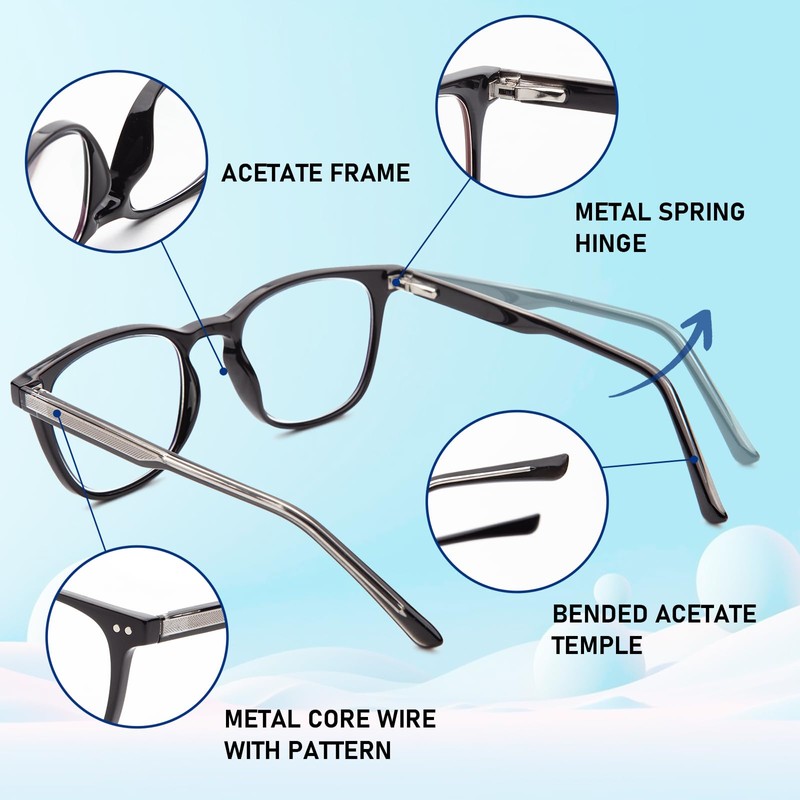 - 【High Quality Material】Durable acetate frame and temple, comfortable to wear; Metal spring hinge, suitable for various faces; HD polycarbonate clear lens, anti-reflective and restore true color.