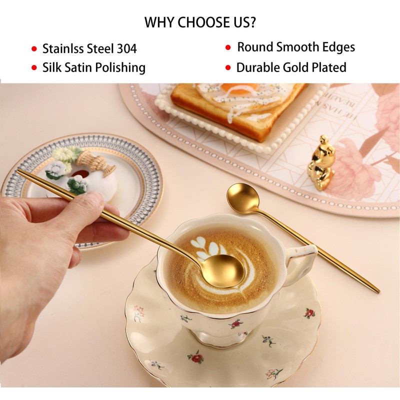 • Aplicación: la cuchara de café de mango largo es adecuada para remover café, té, leche caliente y fría, azúcar, etc.