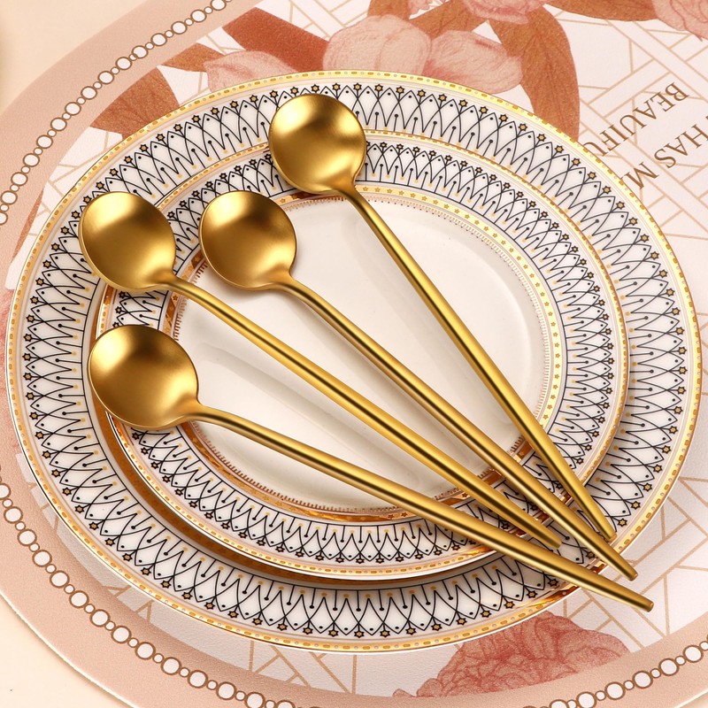 • Diseño: la superficie de la cucharadita está cepillada, y el diseño del mango es de bordes redondos, lo que es más cómodo de sostener, y el mango redondo reduce la presión en la mano al sostener la cuchara. El mango de la cuchara está ligeramente alargado para mejorar la sensación.