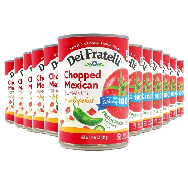 Dei Fratelli Chopped Mexican Tomatoes with Jalapenos (14.5 oz. Cans, 12 pack) - Vine-Ripened – Non GMO, Gluten-Free