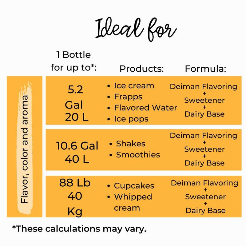 - Delicious concentrated flavors. Color, flavor and aroma. Deiman coconut flavor. (33.8 oz) Flavor Profile: Sweet, creamy, floral, remembers coconut.