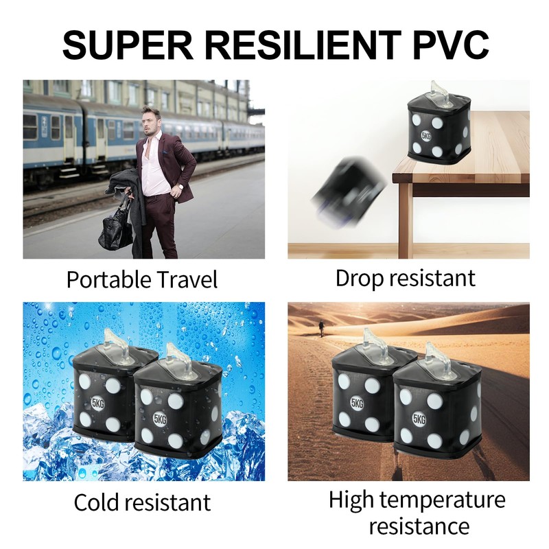 - Durability and design: the water weight bag is made of durable and soft materials with a leak-proof design that allows you to work out without worry.