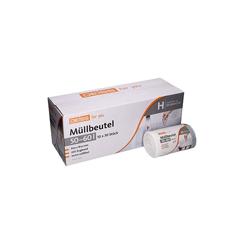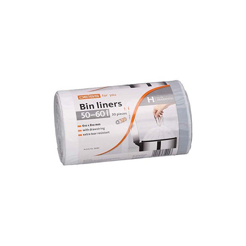 Deiss Bin Liners 50-60 Litres for Brabantia Touch Bin (Size H), Pack of 30