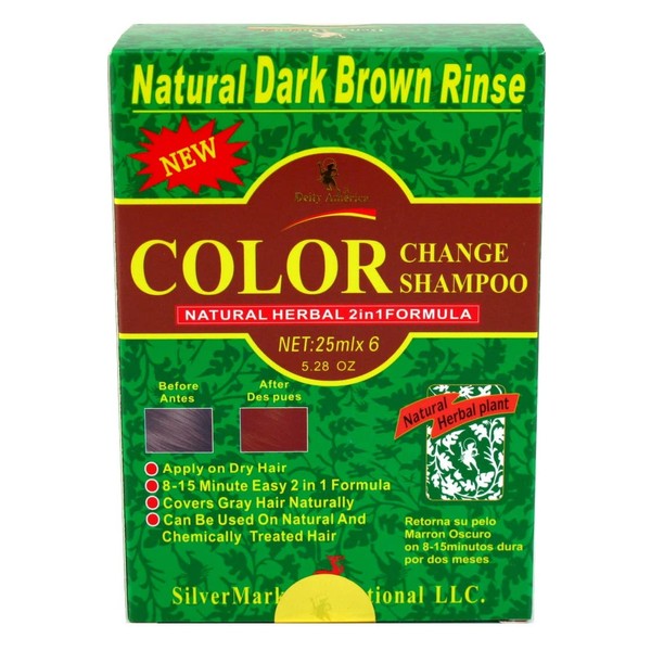 Deity America Natural Herbal 2in1 Formula Color Change Shampoo, Dark Brown Rinse 6 ea