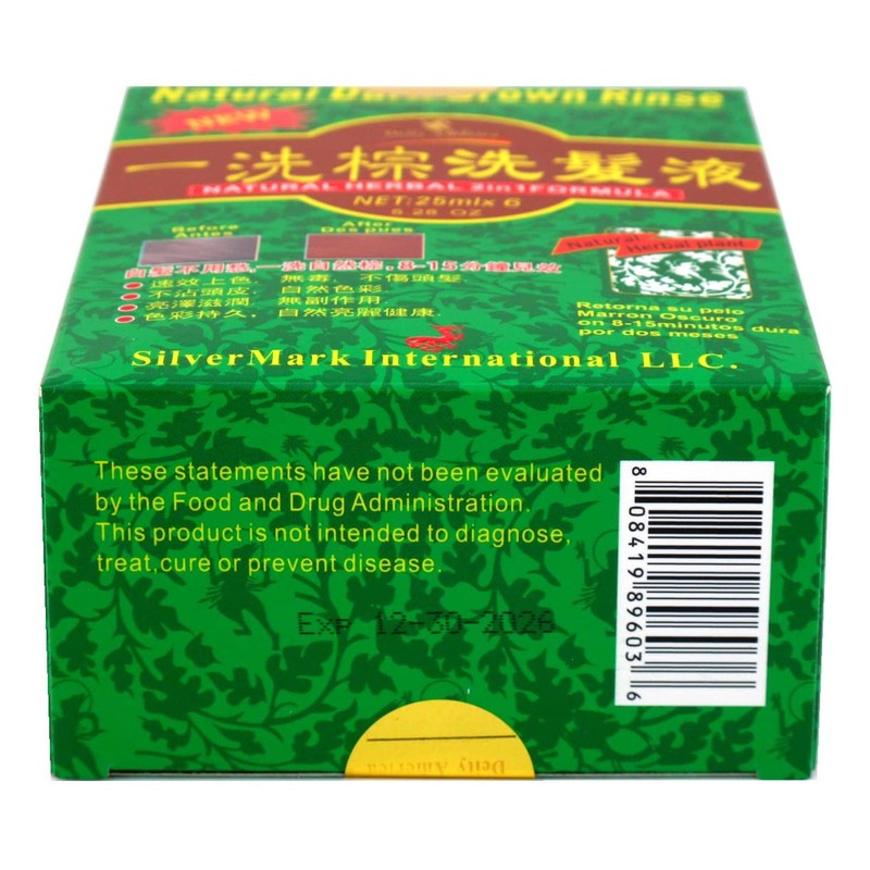 This Natural Dark BrownColor Rinse works like a shampoo that turns your white or gray hairs into dark brown in just 5 to 10 minutes. This product uses Tibet herbs, Tibet ginseng, Tibet red flower, leaves of Chinese arborvitae and several herbal plants. This Natural Dark Brown Color Rinse Packet is a 2-in-1 formula that colors hair while repairing damage caused by chemical dyes. This product moisturizes hair while providing a beautiful natural dark brown hue that covers gray naturally. It's a one-step time saving formula! It's active ingredients will work into the follicle to cover gray hairs. No harsh chemicals or dyes. Just wash and enjoy the results! Can be used after perms or relaxers.