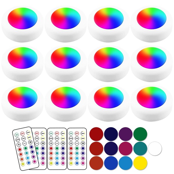 Deitybless 13 Color LED Puck Lights with Remote Control, Wireless Under Cabinet Lighting, Battery Powered Lights, Stick on Lights, Color Changing Lights with Dimmer and Timer