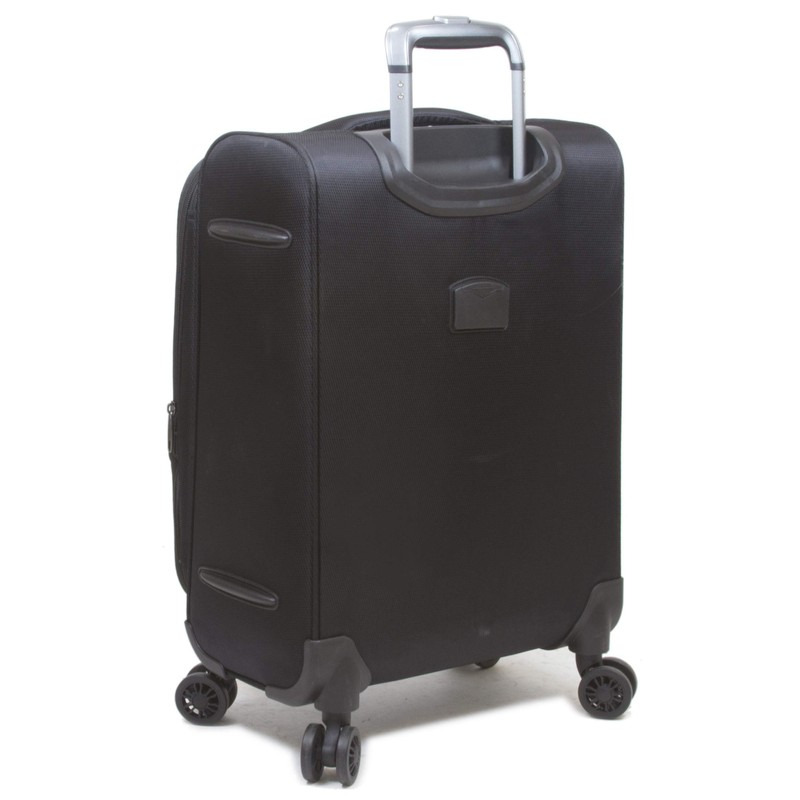 - Durable Nylon construction, Deluxe 8-wheel Design for 360° navigation, Telescoping push-button handle system