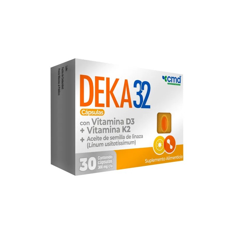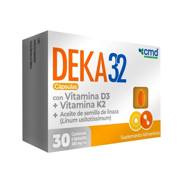 Deka 32 | Vitamina D3 + K2 + Aceite Semilla De Linaza 30 Cápsulas Sabor Sin Sabor