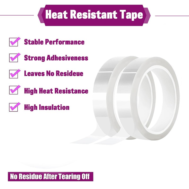 Dekaim 2 Rolls Heat Resistant Tape, 20mm*66m/216ft Transparent Heat Resistant Tape HTV Vinyl Heat Transfer Resistant Press Tape for Sublimation Tote Bags Blanks Ink Mugs Printing DIY Crafts