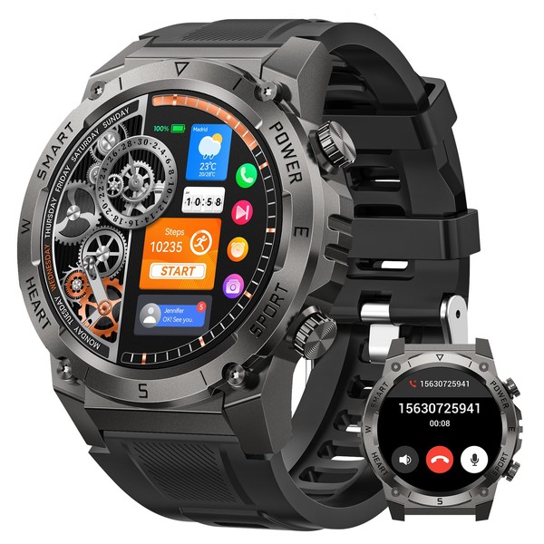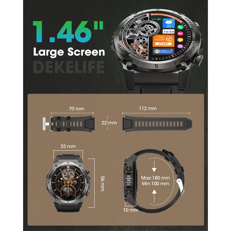 DEKELIFE Men's Military Smartwatch with Phone Function, 1.46 Inch Watches with 500 mAh, IP68 Waterproof, 120 Sports Modes, 24/7 Heart Rate and Sleep Monitor, Smartwatch Fitness for Android iOS, Black