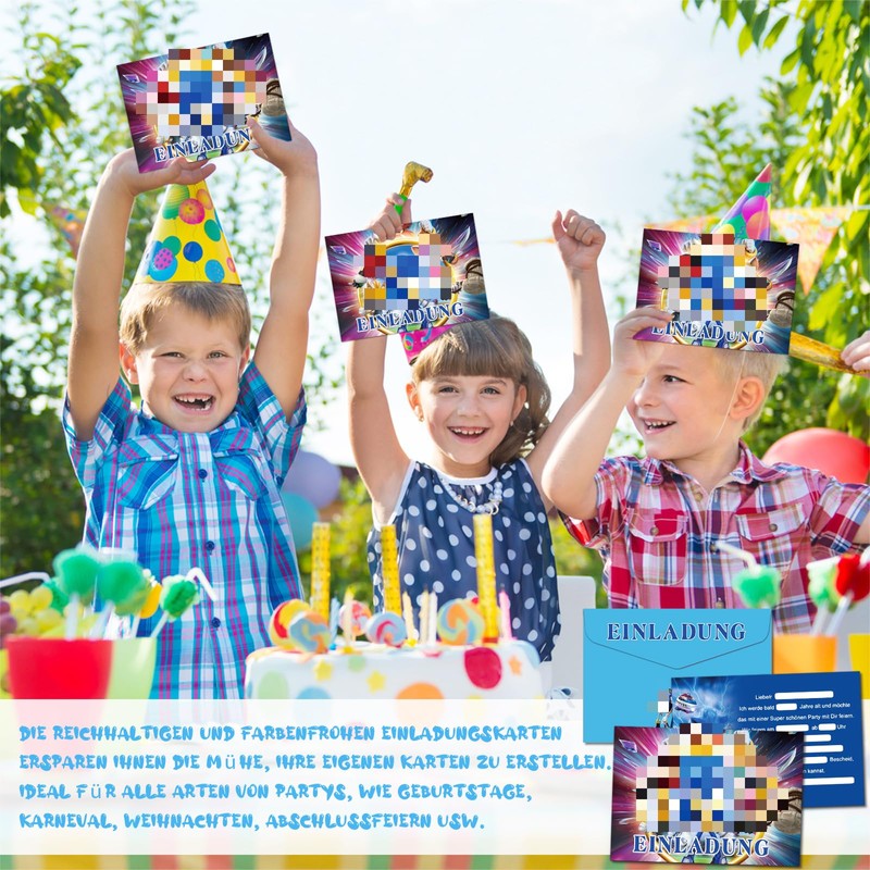 - Individual letters: Each of the twelve invitations for children's birthday includes an envelope with envelope sticker for inviting 12 guests to your party. The envelopes are designed to match the cards and have a practical adhesive closure, perfect for distributing or sending.