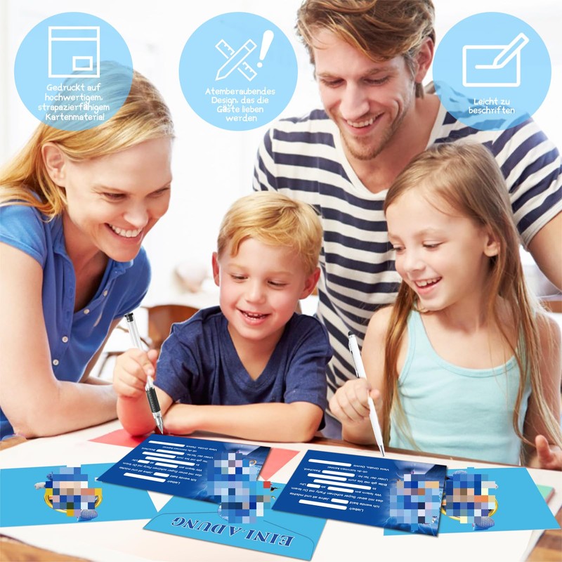 - Easy to fill: the invitation cards for girls and boys leave plenty of space for all important information, so that you can easily enter the date, time, place and other details or notes. Children from 3 years can fill it out independently, so that they can let the little ones write the letter themselves to invite their friends to an incomparable party