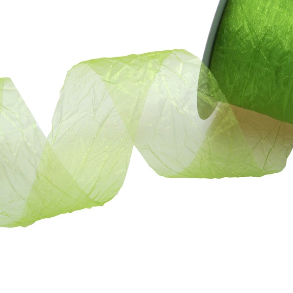 Decorative crashed organza ribbon in green, approx. 50 mm wide on a roll with approx. 20m length
